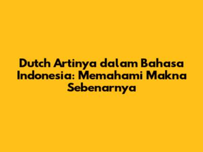 Dutch Artinya Dalam Bahasa Indonesia