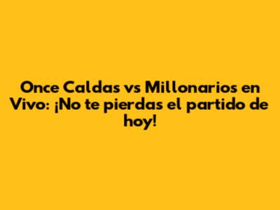 La tecnología nos ha acercado más que nunca al deporte que amamos. Así que, sin importar dónde te encuentres, tienes al alcance de tu mano la posibilidad de vivir la emoción del Once Caldas vs Millonarios en vivo hoy. Prepara las snacks, reúne a tus amigos o familiares, y ¡ponte cómodo para disfrutar de un espectáculo deportivo de primer nivel! La cobertura será amplia, así que no hay excusa para quedarse fuera de la acción.
